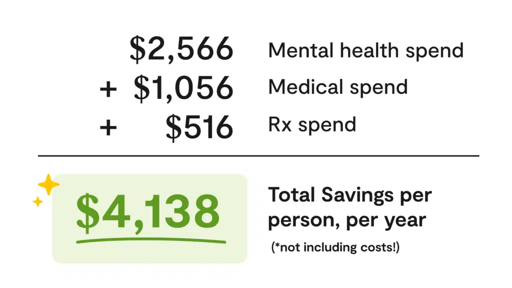 All of this data gives you a deeper understanding of the health care cost savings you can achieve, while allowing us to continuously refine and enhance our offerings for even more effective mental health care across industries.