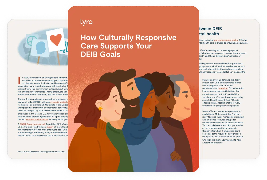 Each employee’s identity and background is unique and intersects with their mental health. A fair, equitable, and inclusive workplace recognizes and values these differences, and offers access to care that’s designed to help all workers cope with mental health challenges. Culturally responsive care (CRC) is a clinical approach that accounts for clients’ unique identities, backgrounds, and experiences, and has been shown to lead to better mental health outcomes. Discover how CRC dismantles barriers to mental well-being for Black, Indigenous or people of color (BIPOC) workers and supports your DEIB goals.
