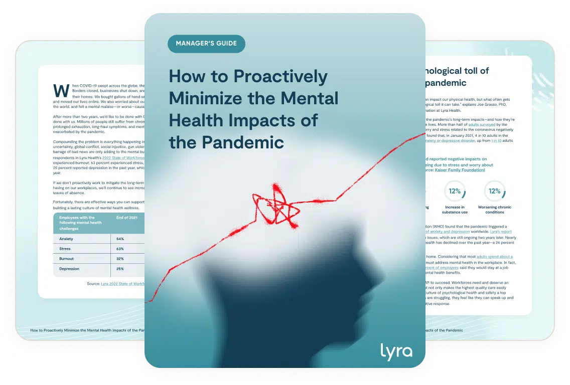 Even after more than two years, millions of people still suffer from chronic stress, fear, grief, isolation, prolonged exhaustion, long-haul symptoms, and mental health disorders brought on or exacerbated by the pandemic. These effects trickle into the workplace, keeping employees from being fully present and doing their best work. Workforces need and deserve an evolved approach to mental health that not only makes the highest quality care easily accessible, but also makes creating a culture of psychological health and safety a top priority.