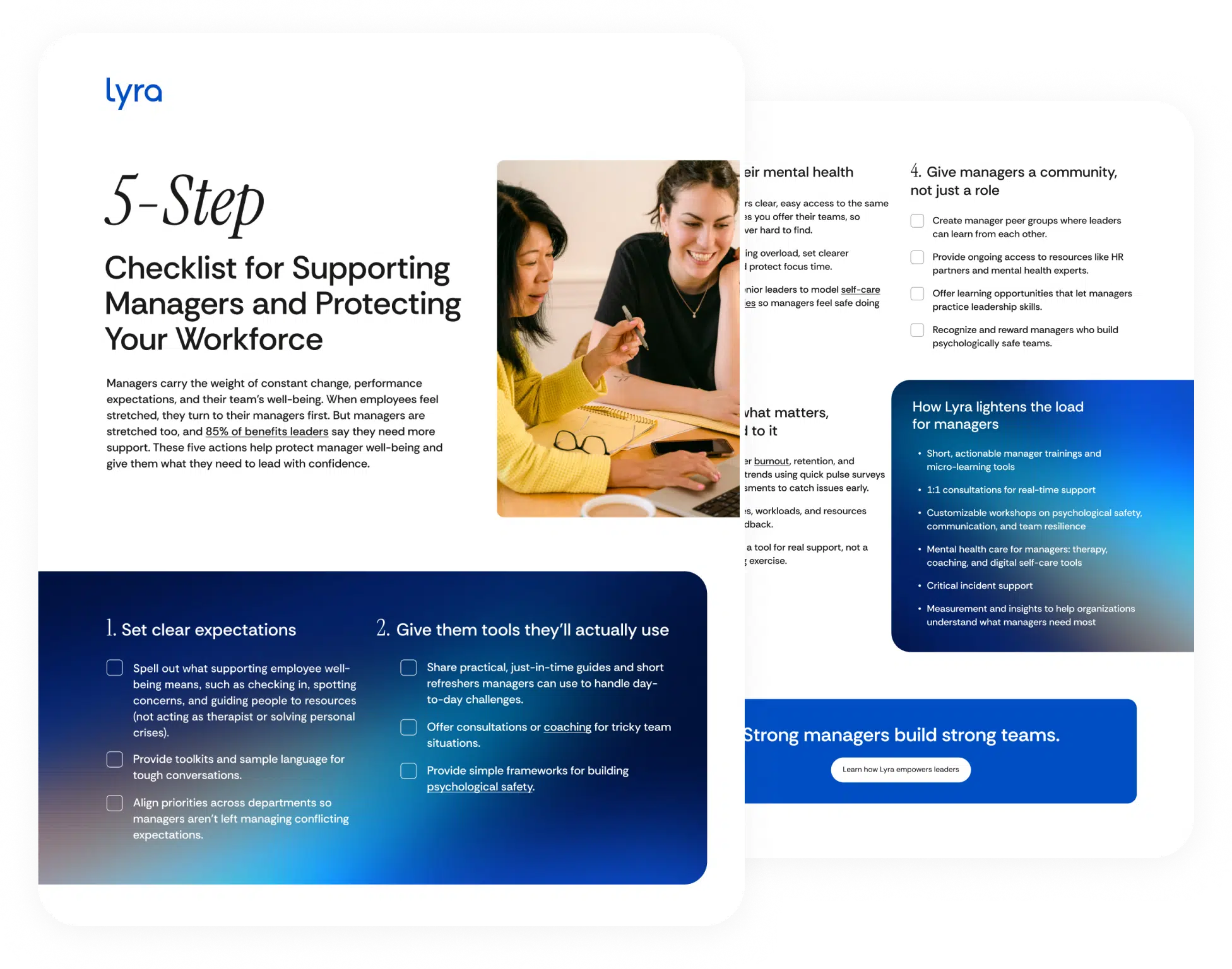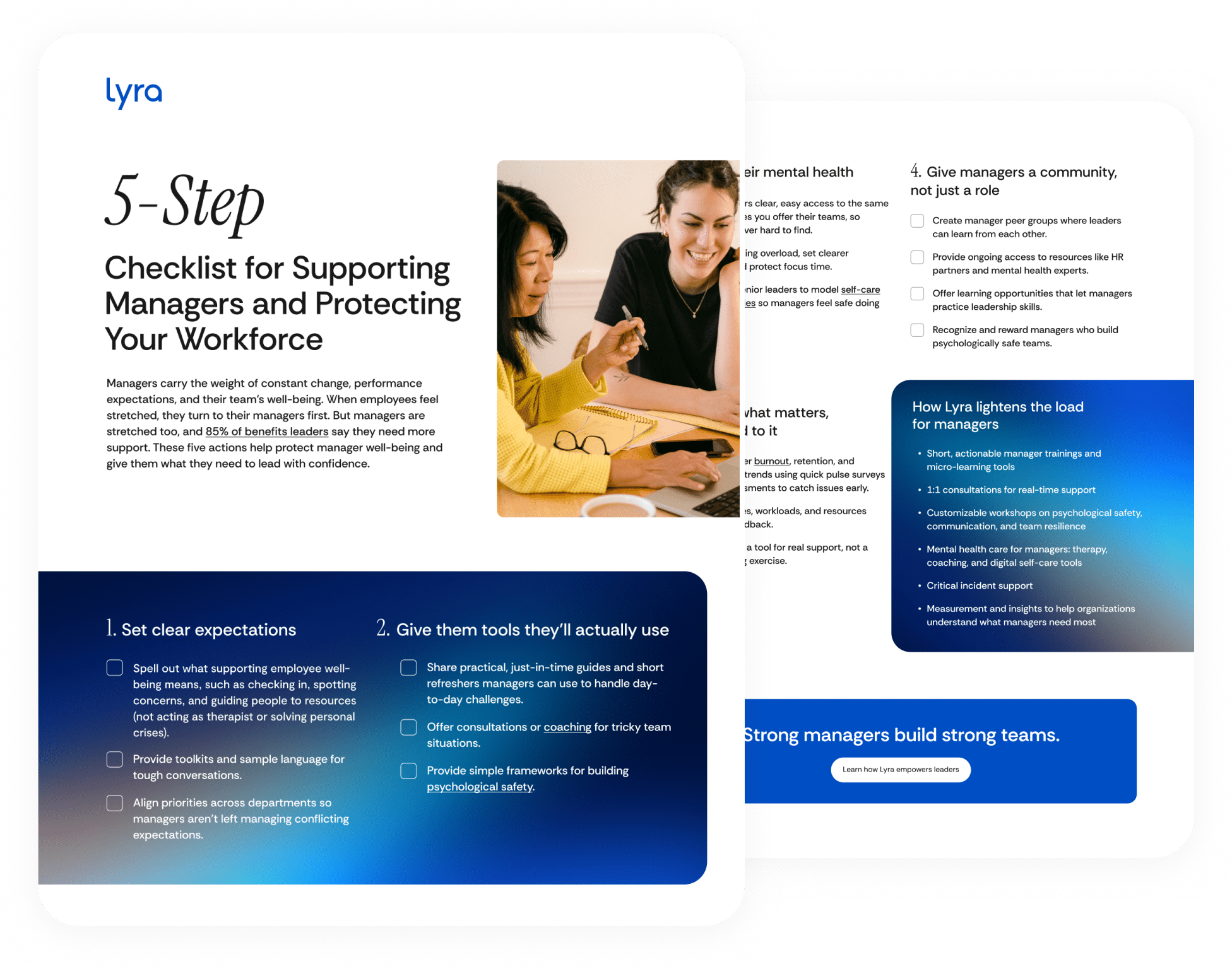 Managers are often the first line of support for employees and the most at risk for burnout. This 5-step checklist outlines clear, practical steps HR leaders can take to strengthen manager support and team resilience.